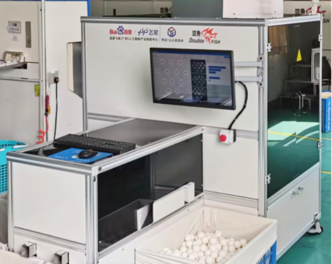 传统人工质检存在两大痛点:效率方面,人工检测效率极低,每小时仅能处理千余个乒乓球,难以匹配“超三星”等高端赛事用球的规模化生产需求;品质方面,瑕疵判定依赖人工主观经验,同一色斑、凹痕等缺陷易导致判定结果不一致,严重制约高端产品合格率稳定性。作为国球乒乓球的核心生产企业,双鱼公司面对高端化、规模化生产的迫切需求,率先攻坚行业共性痛点,携手百度智能云与广东粤桨,依托深度学习与计算机视觉技术,成功研发出全球首台乒乓球瑕疵AI质检设备——双鱼AI智眸球检系统,实现了对每一颗乒乓球进行放大万倍的“360°无死角体检”,真正将“颗颗完美”的品质承诺落到实处,成为中国体育器材行业从“制造”走向“智造”的典范。